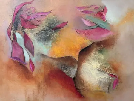 Aleid blijft zichzelf uitdagen. Met Mixed Media, zoals vloeipapier op doek, creëert zij spannende ondergronden die een schilderij een verrassende gelaagdheid geven.